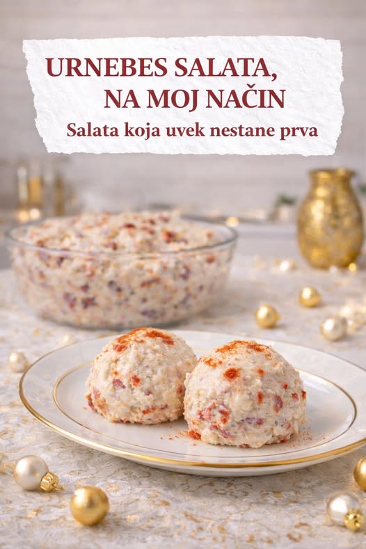 URNEBES SALATA – NA MOJ NAČIN Potrebno: 300 g sitnog belog sira (kravlji ili mešani, dobro oceđen) 100 g sitno seckane šunke ili pečenice 1 manja crvena paprika (sitno seckana ili rendana) 1 mala glavica crnog luka (vrlo sitno seckana ili rendana) 2–3 kašike pavlake (po potrebi, da salata bude kremasta) 1–2 kašike majoneza (opciono, … Read more