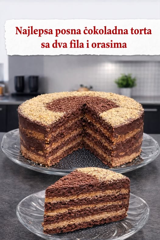 NAJLEPŠA POSNA ČOKOLADNA TORTA SA DVA FILA I ORASIMA
